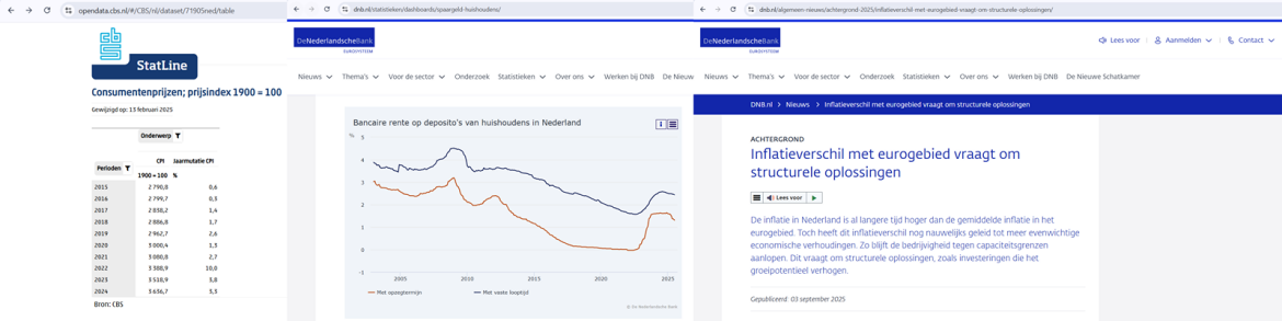 Lage rente: De spaarrente ligt vaak onder de inflatie, waardoor je koopkracht daalt, zie voorbeeld CBS hieronder.
